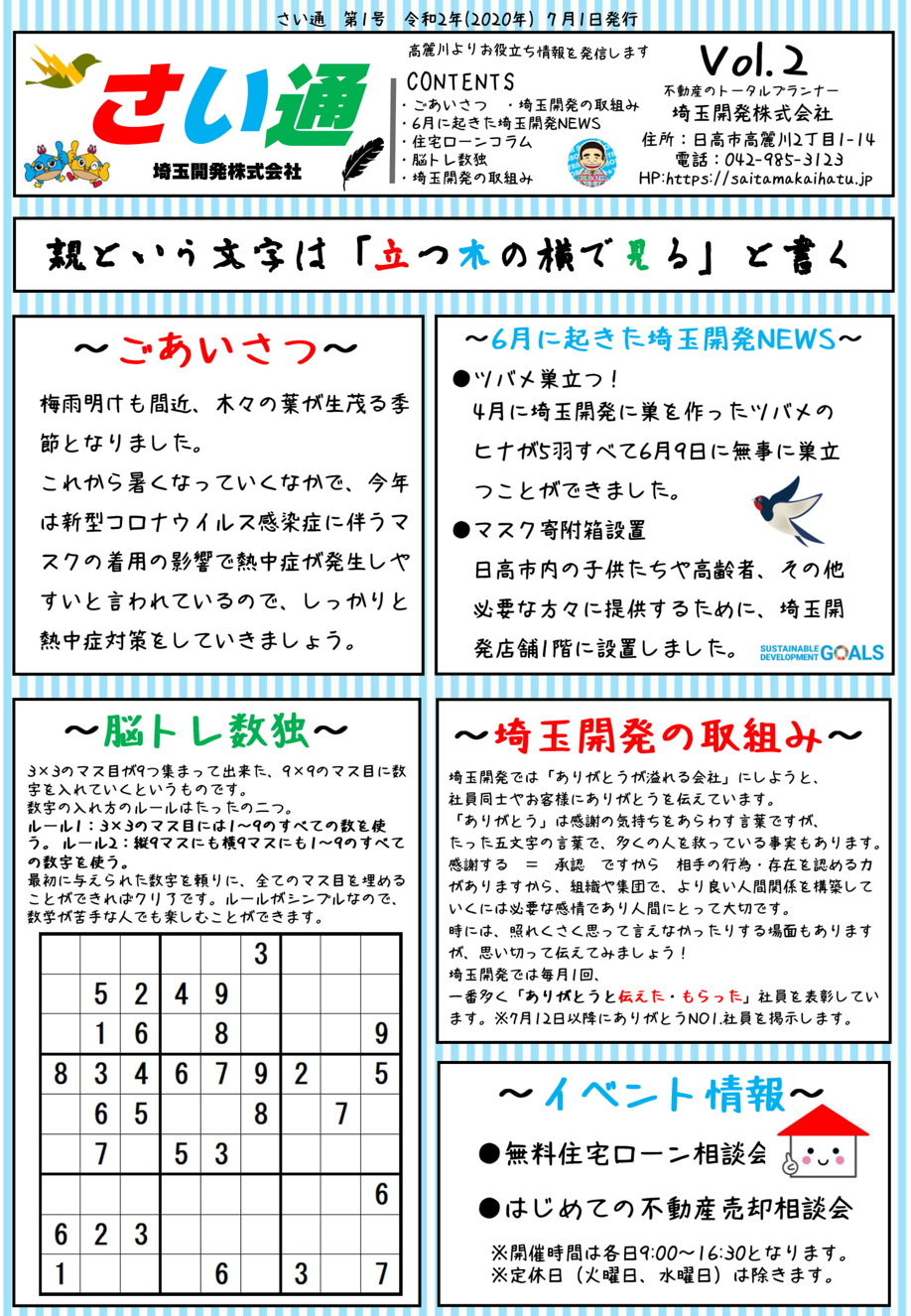 さい通7月号 さい通 2020.08.06 筆者 柳田 直喜 不動産キャリア13年 「住まいで困った事があれば、埼玉開発へ!!」と安心で頼られる存在であり、心地良い豊かな生活を送るため、お客様ひとりひとりの夢と希望を実現していくお手伝いをさせていただきたいです。 また歩く金融機関と言われる程、住宅ローンに強いです。 埼玉開発HPトップ埼玉開発のスタッフ紹介埼玉開発とお友達になりませんか? next さい通6月号 2020.08.06