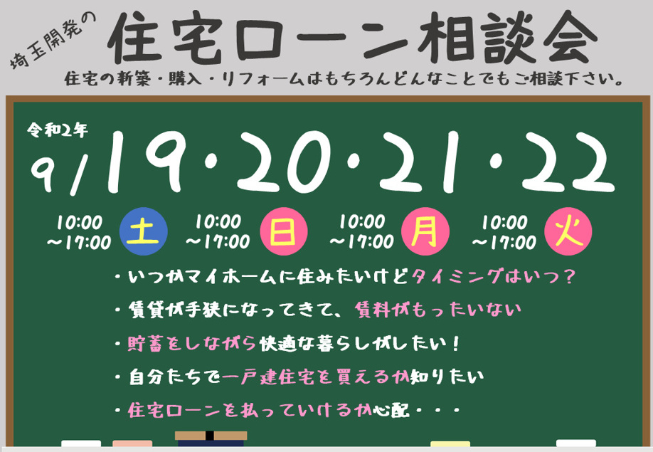 今週末からの4連休に「住宅ローン相談会」を開催します。