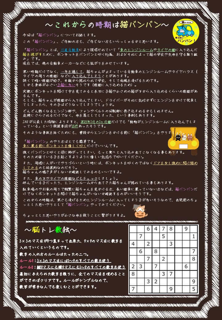 さい通 2023年10月号 さい通 2023.10.01 筆者 柳田 直喜 不動産キャリア13年 「住まいで困った事があれば、埼玉開発へ!!」と安心で頼られる存在であり、心地良い豊かな生活を送るため、お客様ひとりひとりの夢と希望を実現していくお手伝いをさせていただきたいです。 また歩く金融機関と言われる程、住宅ローンに強いです。 さい通 2023年10月号本日10月1日は「さい通」の発行日です。今回のさい通では、「市川 純恵さん」に入社3ヶ月インタビューをしました。これからの時期に注意しないといけないことや脳トレなどなりますので、今月号も楽しんでご覧くださいね!埼玉開発株式会社では、無料で住宅ローン相談や不動産売却査定も行っております。また、住宅ローン・不動産売却に関するご質問・ご相談も承っておりますので、お気軽にお問い合わせください。弊社へのお問い合わせはこちらをクリック↓ next 宅建試験直前の勉強方法 2023.10.05